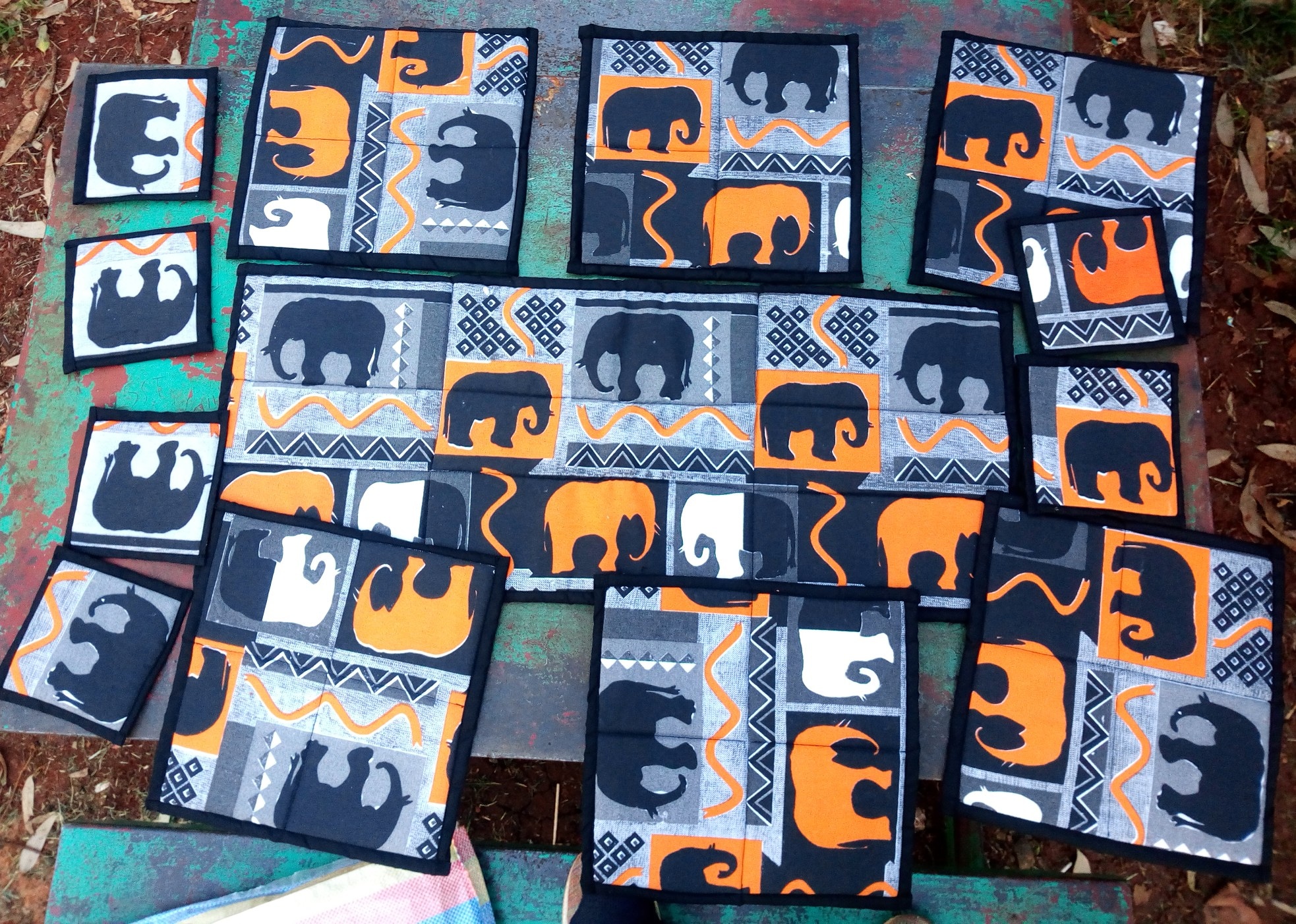 African table mats set consists of 6 plate mats, 6 cup mats and a table runner.